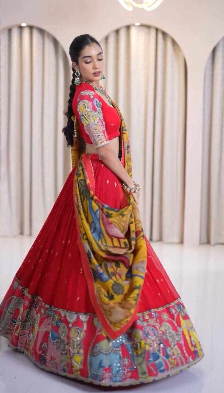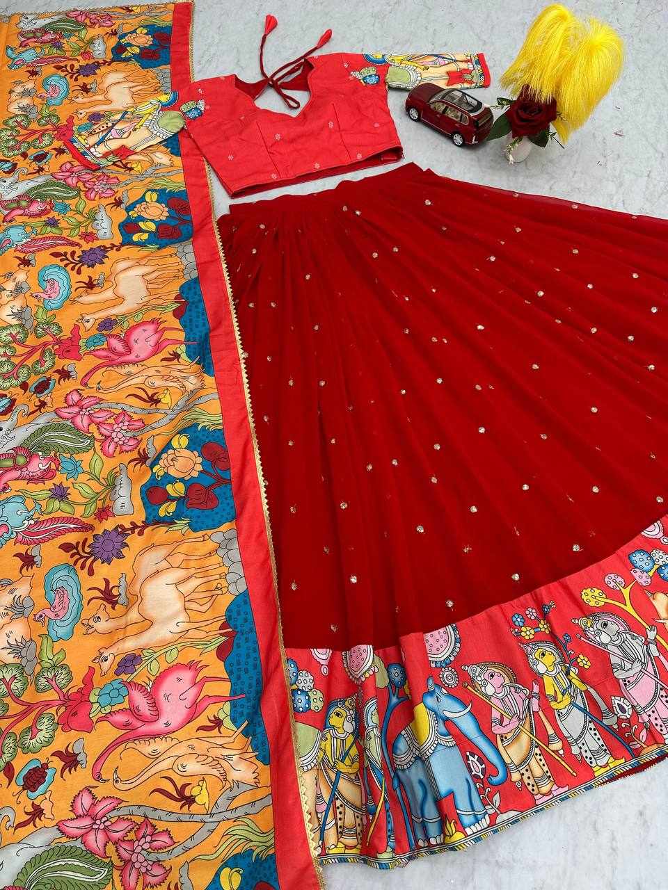 Name : PC 455 Red Kalamkari Print Lehenga