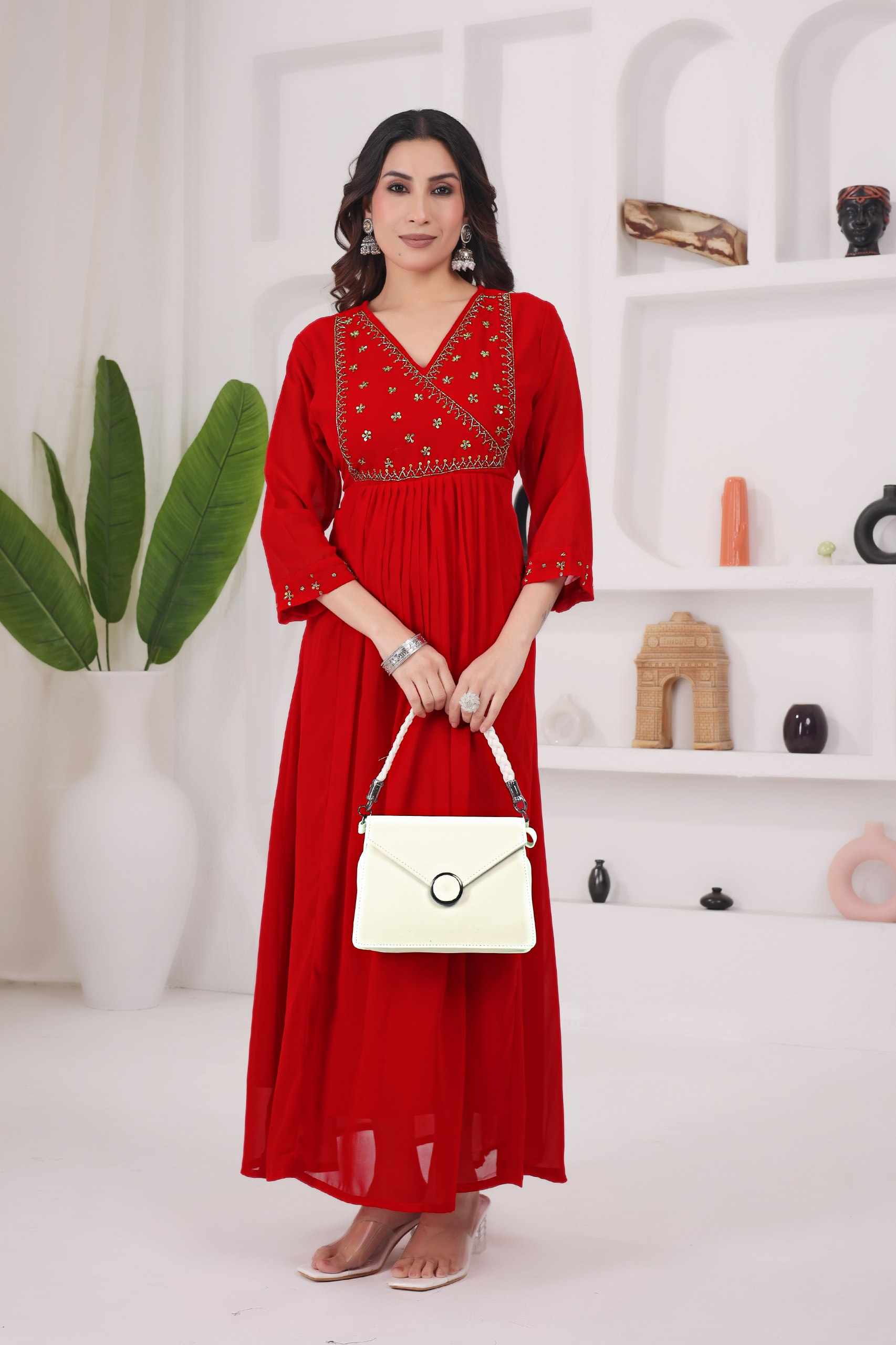 Reviews for WM12 RED BLOOMING GEORGETTE BEAUTIFUL HANDWORK KURTI