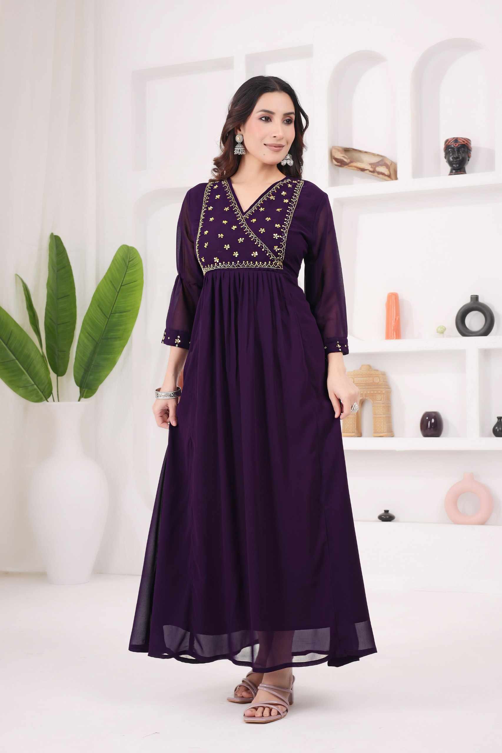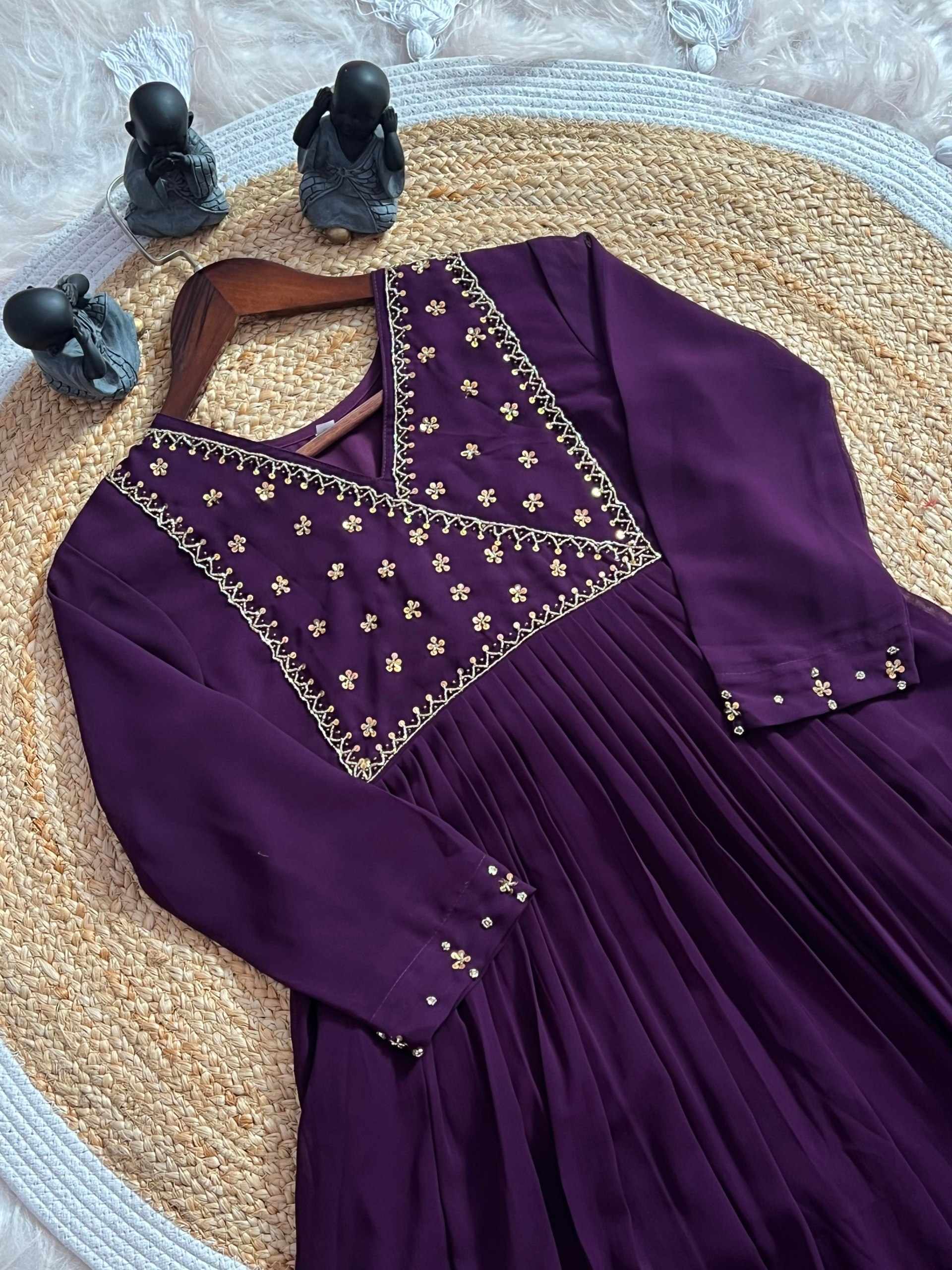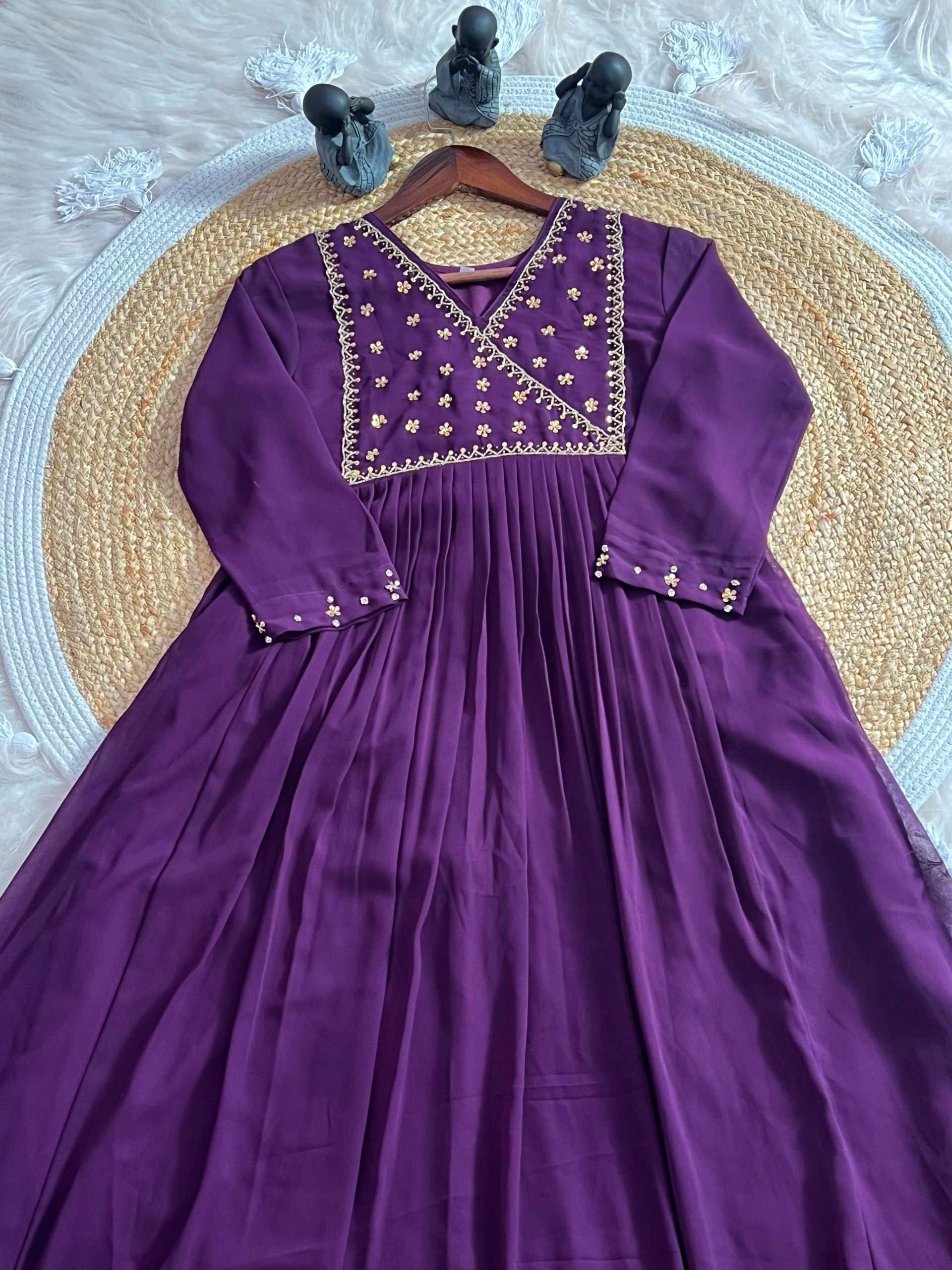 WM12 WINE BLOOMING GEORGETTE BEAUTIFUL HANDWORK KURTI